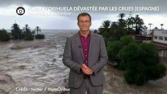 La goutte froide (poche d'air froid en altitude) au large des côtes espagnoles continue de provoquer de fortes pluies orageuses engendrant des crues éclairs et des inondations. Le point avec Cyrille Duchesne.