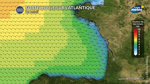 L’ex-ouragan Erin génère une houle cyclonique arrivant du nord-ouest : vagues 4–5 m possibles de la pointe bretonne au littoral aquitain, avec déferlement puissant et risque de submersion ponctuelle, même avec des coefficients de marée modérés. En cette période de vacances, où vous êtes encore nombreux sur les plages et en mer, ces fortes conditions de mer doivent vous inciter à la plus grande prudence.